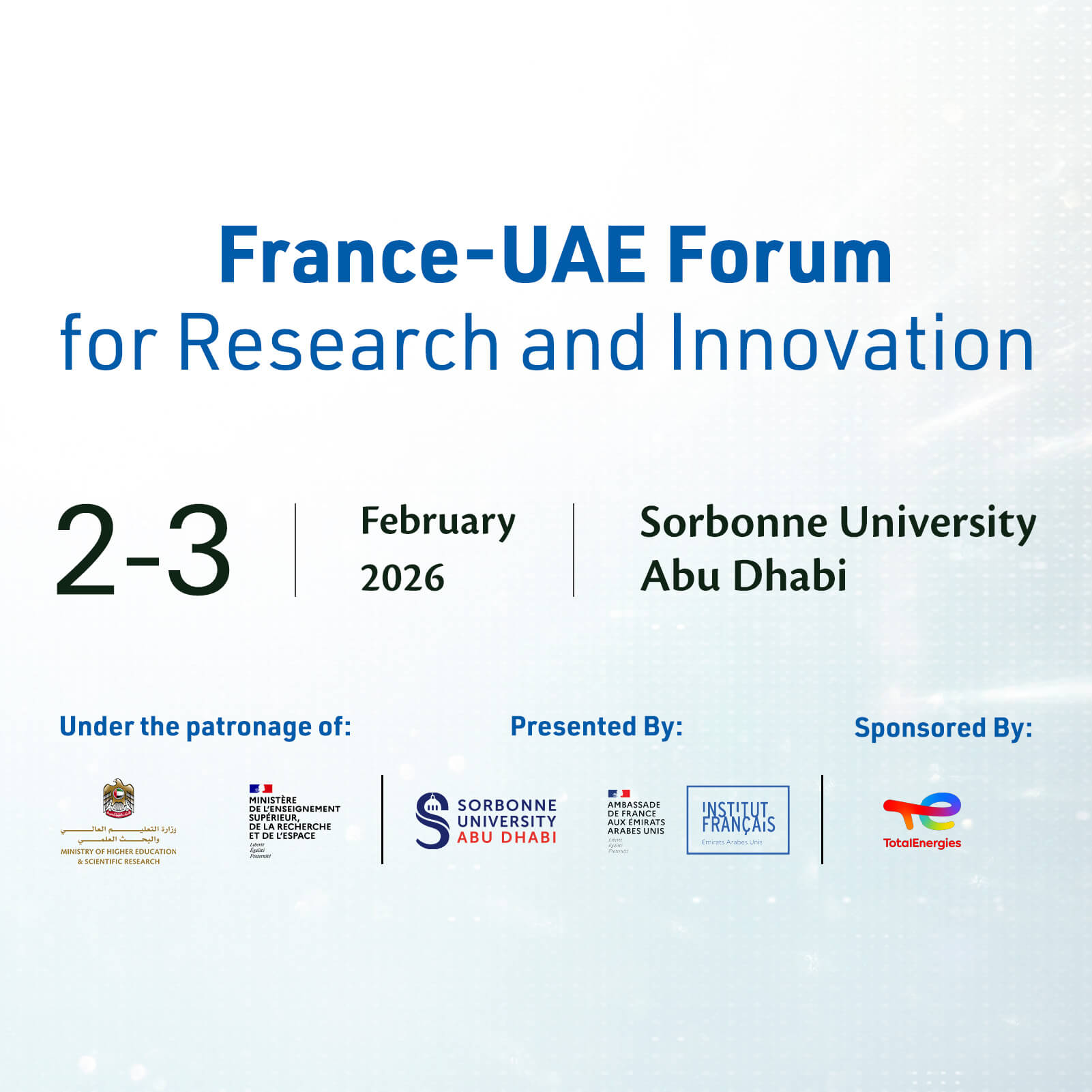 Under the patronage of the UAE Ministry of Higher Education and Scientific Research and the French Ministry of Higher Education, Research and Space, Sorbonne University Abu Dhabi (SUAD) will host the France-UAE Forum for Research and Innovation, set to be held from 2-3 February 2026 at the SUAD campus in the capital. The Forum is co-organised by the Embassy of France in the UAE and Sorbonne University Abu Dhabi, in collaboration with Abu Dhabi Department of Education and Knowledge, Technology Innovation Institute – the applied research arm of the Advanced Technology Research Council – and the French National Institute for Research in Digital Science and Technology